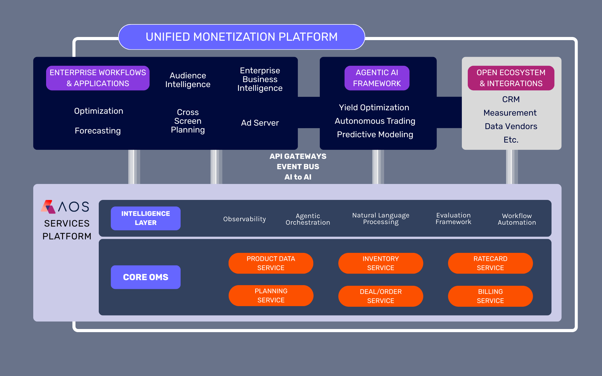 AOS Services Platform is the foundational architecture for multi-platform media monetization. Your team should build your unique differentiators, not the operating system underneath them.